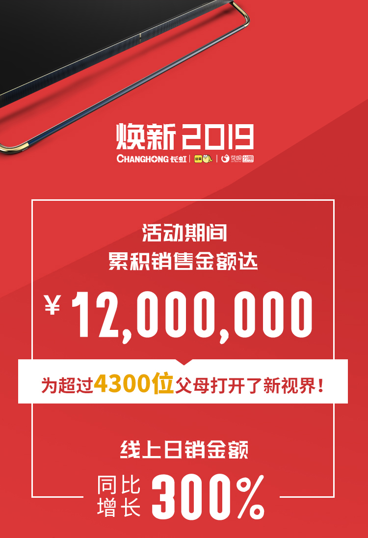纵观这次“焕新2019”的营销活动,无论是多渠道推广、全平台覆盖,还是内容上的走心传播,都体现了长虹强大的营销资源整合能力。更重要的是长虹成功达成了与消费者的有效沟通和口碑沉淀。同时,我们也期待2019年长虹将带给我们更多惊喜,传递有温度的品牌文化!